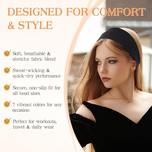 • DiyJibb Headbands for Women, Stretchy Non Slip Soft Cotton Cloth Hair Bands for Sports, Workout, Yoga and Running, 7pcs