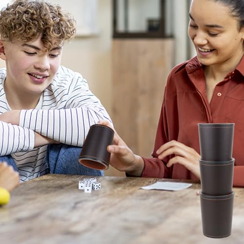 • RERIVER Felt-Lined PU Leather Dice Cup Set, 6 Quiet Dice Shaker Cups with 36 Dices for Bar Party Yahtzee Farkle Dice Games, Coffee