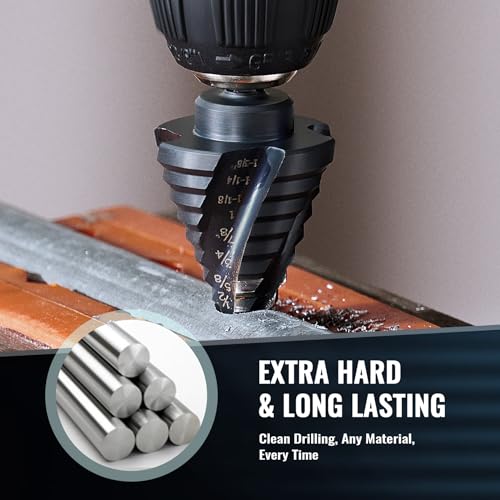 • ZELCAN Step Drill Bit Set, 5PCS Four Spiral Flute Step Bits for Metal, 50 Sizes Titanium-Coated HSS Drill Bits with 1/4" Hex Shank for Stainless Steel Aluminum Wood Plastic