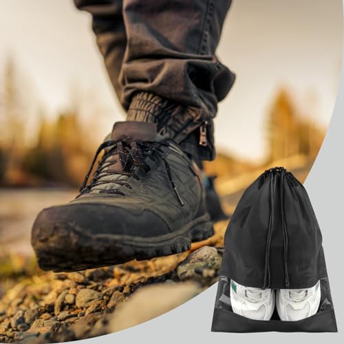 • 12 Pack Large Shoe Bags for Packing with Clear Window, Dustproof Drawstring Travel Shoe Storage Bags for Men & Women, Black