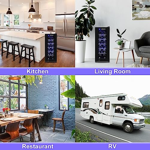 • GEVEELIFE Wine Cooler Refrigerator, 12 Bottle Wine Fridge Small, Freestanding with Digital Temperature Control Mini Wine Fridge, Wine Cellar for Red, White, Champagne