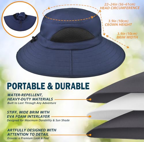 EINSKEY Fishing Hat with Neck Flap, UV Protection Wide Brim Sun Hat for Men Women- Waterproof Adjustable Breathable Foldable, 07 Navy Blue (Full Coverage), One Size