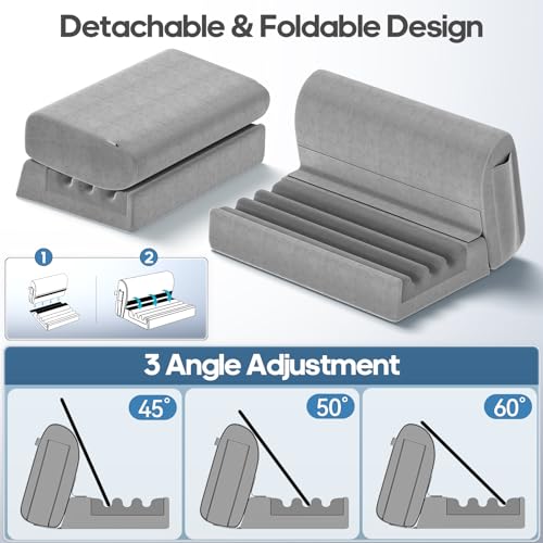 • KDD Tablet Pillow Holder, Removable Pillow Soft Pad for Lap, Bed and Desk Tablet Stand Dock with Pocket & Stylus Mount Compatible I-Pad Pro 12.9,10.5, 11, Air Mini, Galaxy Tab, Phones, E-Reader
