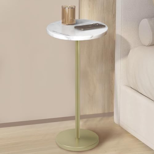 COVLON Nature Marble Top Drink Table, Small Round Side Table, Martini Table, Pedestal Couch Table for Living Room, Bathroom, White&gold