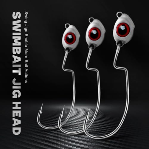 • OJY&DOIIIY Fish Eye Swimbait Jig Heads, 20 Pack Weighted Hooks for Texas Rig or Ned Rig Fishing 3/16 oz with 3/0 Hook