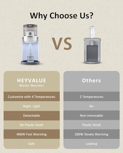 • Water Warmer, HEYVALUE Baby Bottle Warmer, Formula Maker with Night Light, 4 Temperature Control & 72H Keep Warm, Detachable Tank, Instantly Dispenses Warm Water, Feed Baby More Easier and Healthier