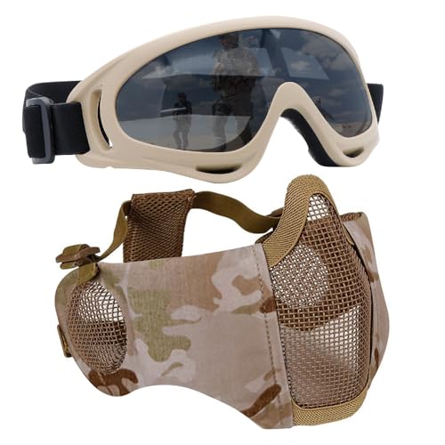 • Yzpacc Airsoft Mask with Goggles, Foldable Half Face Airsoft Mesh Mask with Ear Protection for Paintball Shooting Cosplay CS Game