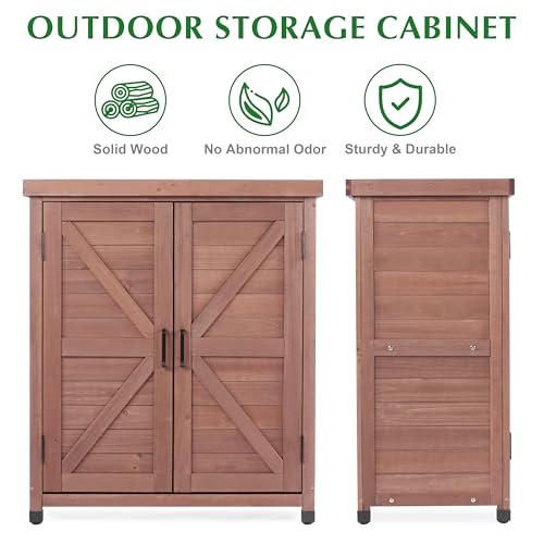 SoliWood Outdoor Storage Cabinet & Potting Bench Table with Metal Top, Wooden Patio Furniture, Garden Workstation (Royal Brown, 36x31x17in)