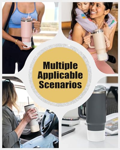 • WeLiu 2 Packs Glitter Silicone Boots Bottom Covers for Stanley Quencher H2.0 20-40 oz Tumbler, Stanley IceFlow Flip 20 oz 30 oz, Hydro Flask Water Bottle 12-24 oz (Translucent Silver, Gold)