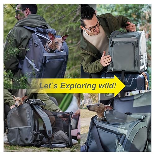 • Wildgogo Expandable Pet Carrier, Airline-Approved Foldable and Detachable Backpack, Fits 13lbs Cat&11lbs Small Puppy Dog, for Car Travel,Camping and Emergency Transportation and Shelter (Grey)