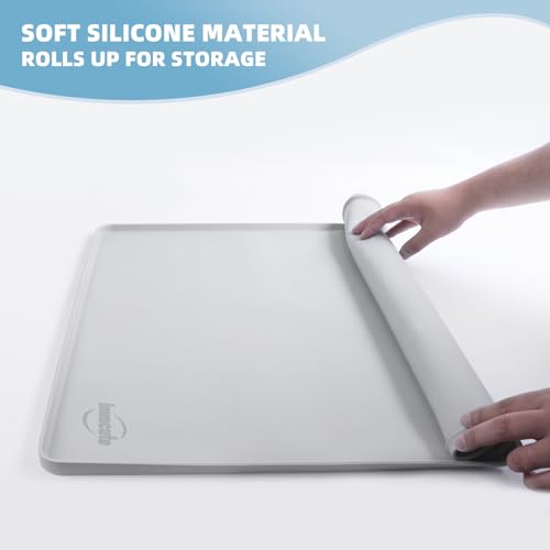 IMMCUTE Pee Pad Holder, Fits Up to 24" x 24" Training Pads, Silicone Non-slip Dog Potty Tray,High Edge Puppy Pad Holder Tray for Easy Cleaning with 8 Holder Clamps, for Puppy Potty Training, Gray