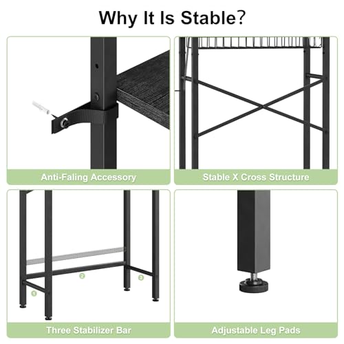 • Kalrin Over-The-Toilet Storage Rack, 4-Tier Bathroom Organizer Shelf Over Toilet with Adjustable Shelf and Basket, Freestanding Space Saver Bathroom Shelves Above Toilet for Room (Pure Black)