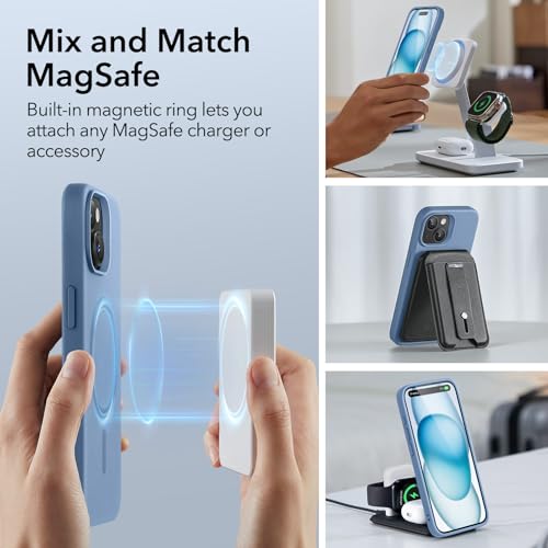 • ESR for iPhone 15 Case with MagSafe, Supports Magnetic Charging, Slim Liquid Silicone Case, Shock Absorbing, Screen and Camera Protection, Cloud Series, Light Blue