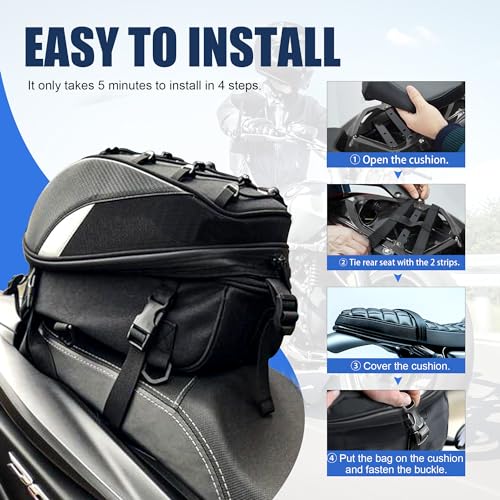 • E-riding Waterproof Motorcycle Tail Bag, 25L-38L Large Capacity Motorbike Helmet Bag, Motorcycle Backpack, Dual Use Luggages Bag