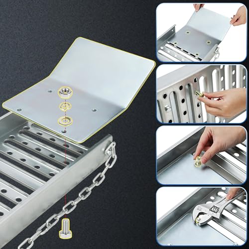 • VroomSteel 72" L x9 W Tri - Foldable Ramps, Folds into Three Sections Loading Ramp, Set of 2, Silver Color, Ramps for Lawn Mower Total Weight Capacity 1500 lbs