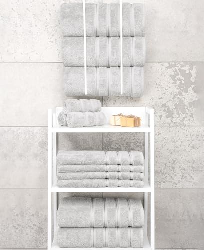 • American Soft Linen Luxury 4 Piece Bath Towel Set, 600 GSM 100% Cotton Turkish Bath Towels for Bathroom, 27x54 in Large Bathroom Shower Towels, Silver Grey