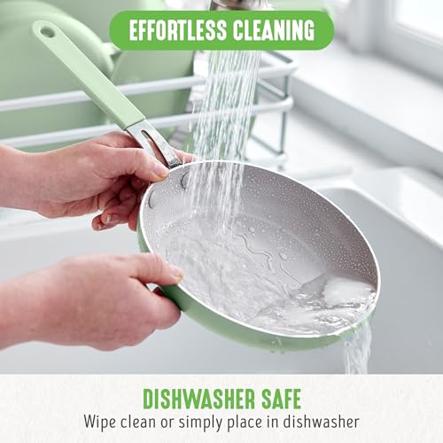 • GreenLife Dream 8" & 10" Healthy Ceramic Nonstick Frying Pan Set, PFAS-Free, PFOA-Free, Dishwasher & Oven Safe, Stay-Cool Handles, Durable Aluminum Body, Versatile Cooking, Easy Clean, Sage Green
