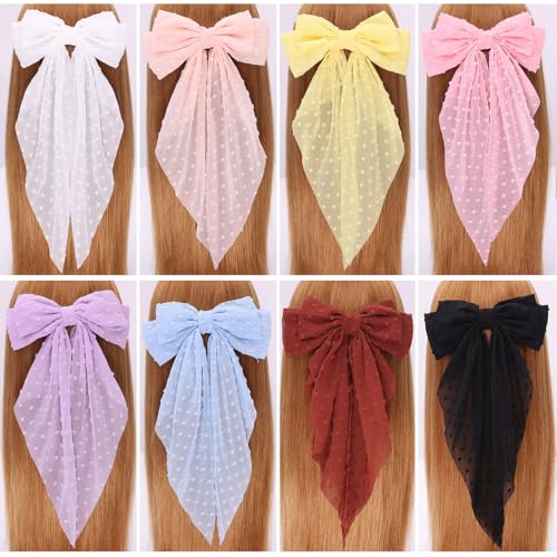 • MRJ 4Pcs Chiffon Hair Bows for Women Big French Bows Hair Clips for Girls Hair Accessories Barrettes Metal Clips Bowknot Aesthetic