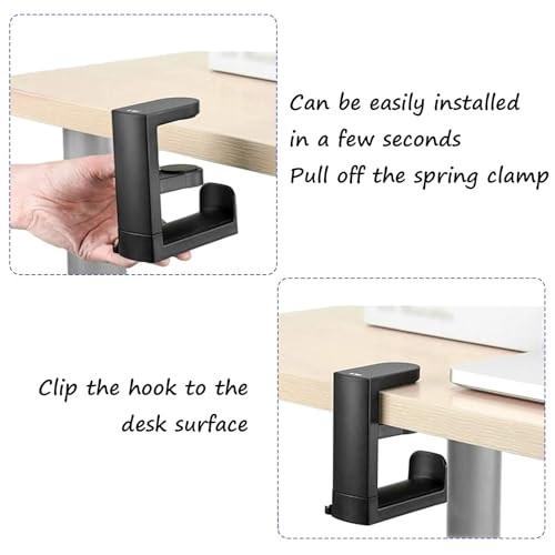 QILUCKY Headphone Desk Hook Stand Hanger Holder, Foldable Desk Accessories PC Gaming Headset Accessories Headphone Holder Hanger Mount, Under Desk Clamp Hook Mount Headset Stand (Black), Large