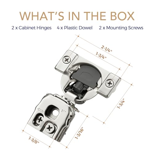 • 2 Pack 1 Pair 1 inch Overlay Soft Close Hinges for Kitchen Cabinet Hinges Satin Nickel Hidden Hinges Stainless Steel Concealed Hinge self Closing