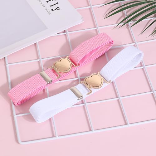• Molain 2 Pack Girls Belt for Waist Size 15-30", Kids Elastic Belt Heart-Shaped Metal Buckle Waist Belt for Girls, Elastic Stretch Belts for Kids Dress Pants Jeans(pink+white)