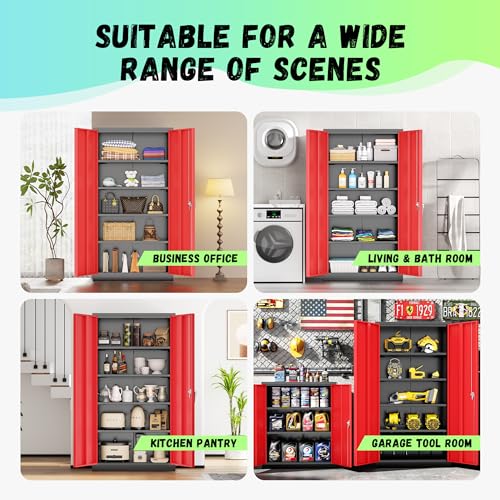 • INTERGREAT Metal Storage Cabinet, 72" Tall Locking Storage Cabinet with 2 Doors and 4 Adjustable Shelves, Steel Tool Locking Cabinet for Home Office, Warehouse, School (Black Red)