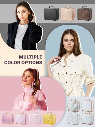 • Qislee Makeup Box with A Detachable Lighted Mirror, Waterproof Travel Train Case, Cosmetic Organizer and Makeup Suitcase with Adjustable Dividers, Magnetic LED Mirror(Rose Gold)