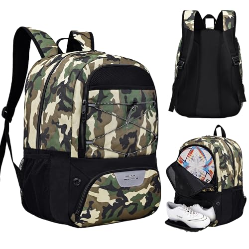 Hsmihair Soccer Bag-Soccer Backpack&Backpack for&Football Volleyball& Basketball,with Ball Compartment and Training Package, CamoBlack, XL