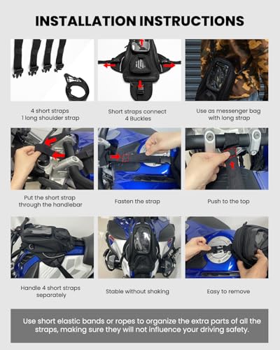 • ILM Motorcycle Tank Bag Magnetic 4 Straps Reinforced Fastening Waterproof Touch Screen Phone Pouch Motorbike BT01