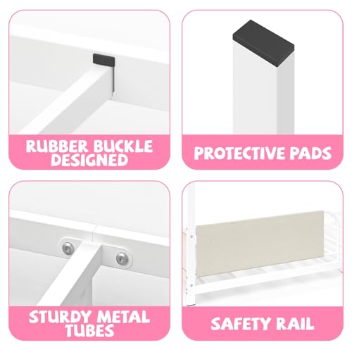• Timy House Shape Twin Size Montessori House Bed Metal Floor Bed with Storage Rack and Caddy Twin Bedframe for Kids No Box Spring Needed White