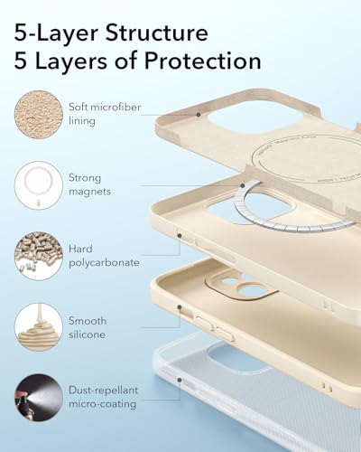 • ESR for iPhone 14 Case with MagSafe, Supports Magnetic Charging, Smooth & Slim Silicone Case, Shockproof, Full Screen and Camera Protection, Soft Microfiber Lining,Light Tan