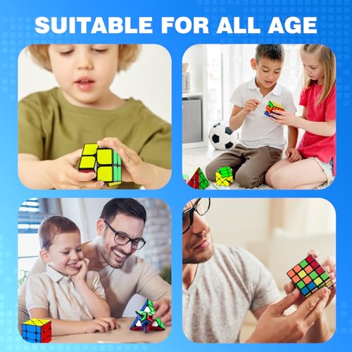 • AuntyFey 5 Pack Magic Speed Cube Set - 2x2, 3x3, 4x4, Triangle Megaminx Speed Cubes for Kids & Adults