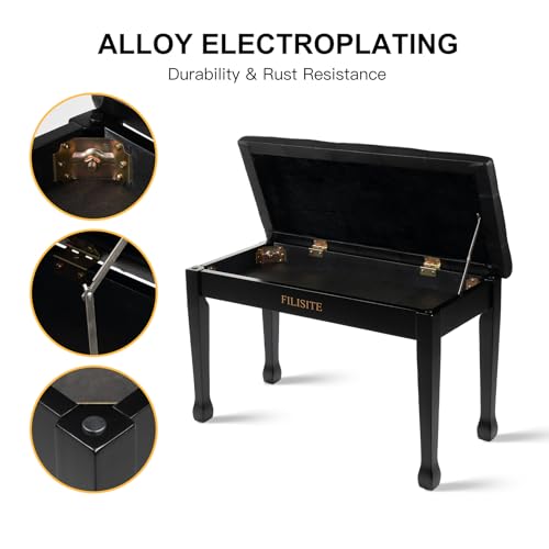 • FILISITE Duet Piano Bench with Storage, Wooden Piano Stool with Waterproof Padded Cushion, Bench Seat for Vanity, Living Room, Bedroom (Black)