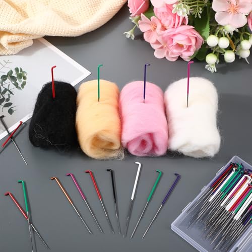 CroBlissful 60 Pcs Needle Felting Needles 7 Colors,Wool Felting Supplies in 7 Sizes Needle Felting Tool with Twisted, Cone, Triangular Metal Felting Needles Color Coded Felting Needles for Beginners, black, green, purple, red, white, pink, gold