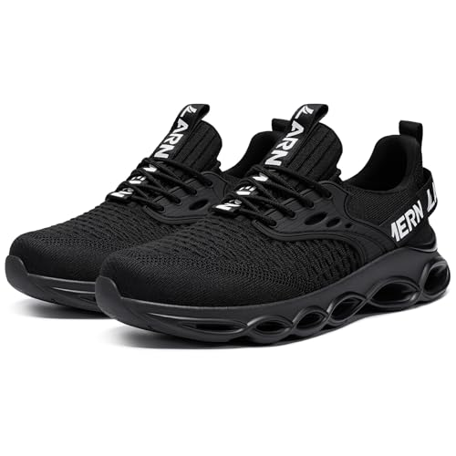 LARNMERN Steel Toe Shoes for Women Safety Shoes Work Sneakers Comfortable Safety Toe Sneakers Work Lightweight Colorful Zapatos de Seguridad (8.5,Deep Black), 8.5 Women/6.5 Men