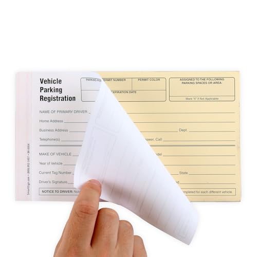 • SmartSign 2-Part Vehicle Parking Registration Form, Carbonless Paper Copy and Manila Cardstock Hard Copy, 5 x 8 inch, Pack of 50