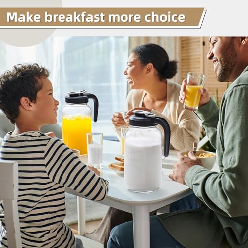 Glass Pitcher with Lid - 2 Quart Mason Jar Pitcher with Filter Lid, Wide Mouth Jar Leak-proof Water Jug, Heavy Duty Container for Water, Juice, Milk, Tea, Iced Coffee, and Drinks - Set of 3