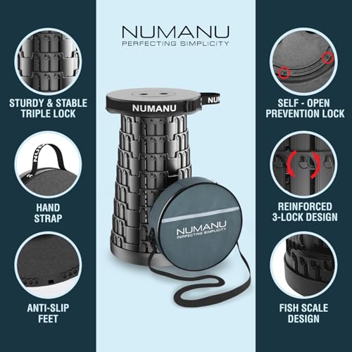 • NUMANU 2025 Upgraded Collapsible Stool & 3IN1 Cushioned Carry Bag, Adjustable Height Folding Stool, Telescopic Camping Chair Retractable Seat or Footrest for Outdoors & Travel, Max 620lbs