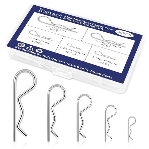 • 50 Pcs Cotter Pins, Cotter Pin Assortment Kit, Heavy Duty R Clips Hardware Pins, 5 Sizes Spring Fasteners Hitch Pin for Trailer Locking, Trailer Clamps, Lawn Mowers, Trucks, Mechanic's Choice