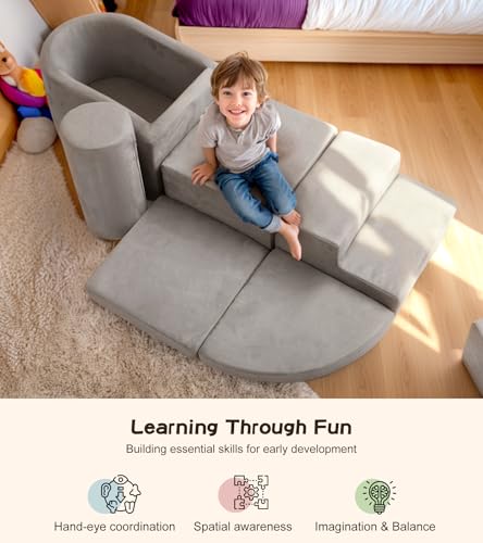 little dove Climbing Toys for Toddlers Inside, Foam Climbing Blocks with Ball Pit (Balls Not Included), 7-Piece Soft Toddler Climbing Toys Indoor, Climb and Crawl Play Set with Widended Velcro, Easy to Clean, Large