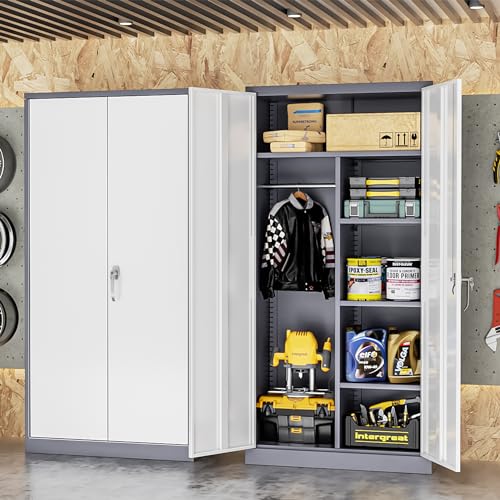 • INTERGREAT Wardrobe Cabinets with Locking Doors and Shelves, Clothing Locker 72" X 36" X 18" Storage Cabinets for Home Room,Fire Department, School, Employee,Gym,Government (Grey White)