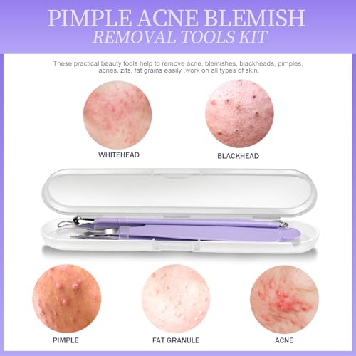 Teenitor Pimple Popper Tool Kit and Blackhead Remover Tools, Ingrown Hair Tweezers, Professional Blackhead Extractor Pimple Extractor Comedone Extractor, Black Head Remover for Face, Purple, 1 Count (Pack of 1)