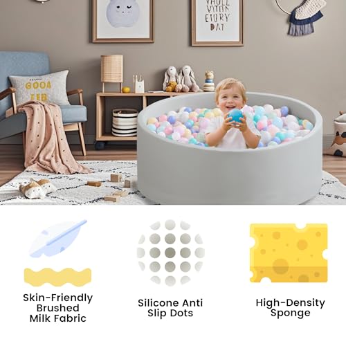 • Zedachica Ball Pit for Toddlers 47.24''x15.75'' Baby Ball Pit Soft Foam Ball Pits Round Lagre Kids Ball Pits Indoor and Outdoor Game Kids Play Ball Pool Ideal Gift for Children (Grey, NO Balls)