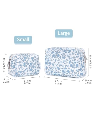 • Narwey Small Cute Floral Makeup Bag for Purse Mini Cosmetic Bag Travel Makeup Pouch Zipper Pouch Cute Make up Bags with Compartments for Women Girls (Little Blue Flower, Small)