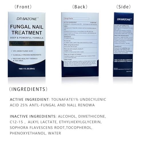 Drawzone Toenail Fungus Treatment Extra Strength with 25% Undecylenic Acid, Ingrown toenail treatment, nail repair, Fungus nail treatment, yellow toenail, Damaged Nails foot fungus treatment extra strength, brown, 2 Fl Oz (Pack of 1)
