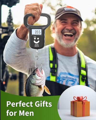 • MEIYA Fish Scale/Fishing Scale: Dual Power (Battery/Rechargeable), Extra Wide Handle, Backlit LCD Display, Includes 2 AAA Batteries&USB-C Charging Cable, Fishing Gifts for Men (Black)