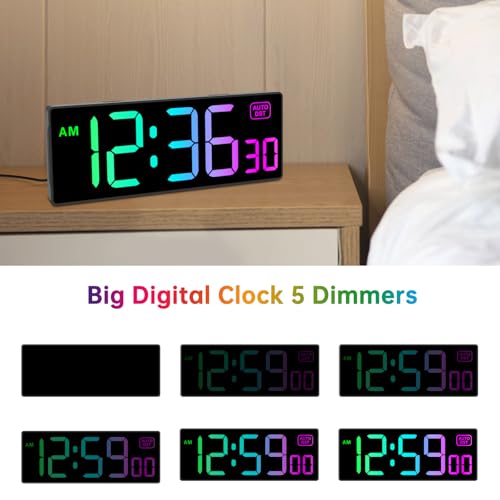 • Soobest Digital Wall Clock with Remote Countdown Electrical Timer Seconds for Gym Living Room Office Classroom, 8 RGB Colors, Auto DST, Corded Plug in Large Display 5 Dimmer (10.2" Multicolor)