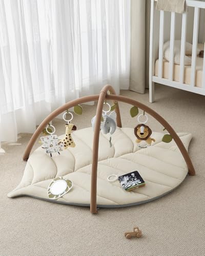• Blissful Diary Baby Play Gym & Activity Mat, Leaf Shaped Baby Tummy Time Play Mat with 6 Detachable Toys, Promotes Motor Skills & Sensory Development, Newborn Baby Essentials Gift, Oatmeal Beige