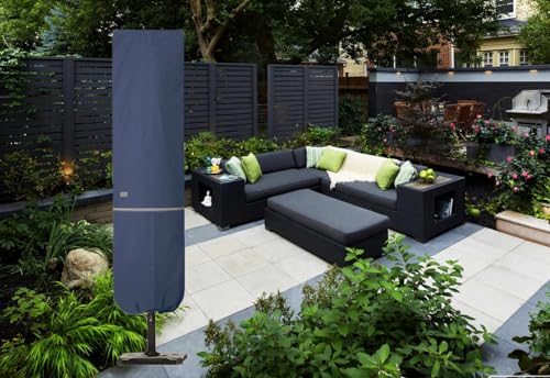 • Garden Balsam Patio Umbrella Cover with Rod for 7 to 11 Ft Umbrellas & 15 Ft Double-Sided Umbrellas, Protective Waterproof Cover with Zipper, Dark Blue
