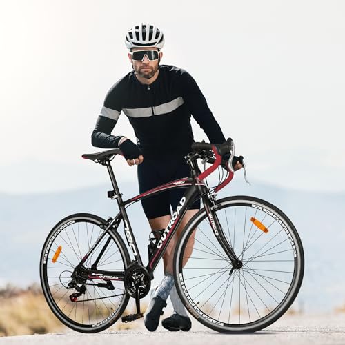 • MarKnig 21 Speed Road Bike with Light Aluminum Alloy Frame, 700C Wheel Commuter Bicycle with Dual V Brakes, 26” Faster Racing Bike for Men and Women, Triathlon Bike for Adult (Red)